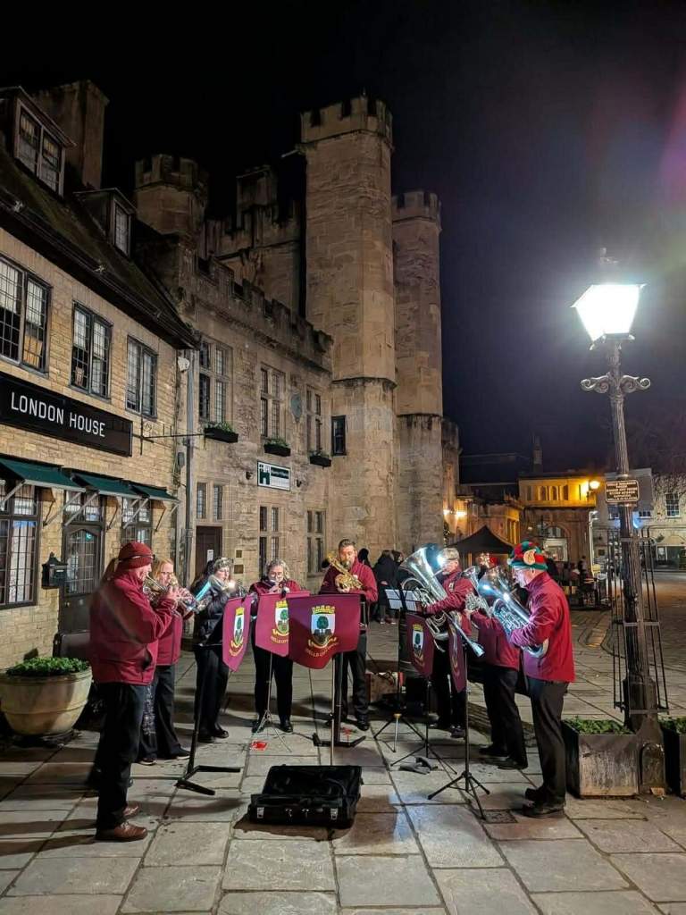 On Wednesday, the band had the pleasure of playing at Easton Green for their annual Carol Concert around the Christmas tree. Friday saw the band split into smaller groups, spreading Christmas cheer around Waitrose and various local pubs. On Saturday, we were out again, starting the day at Tesco, before heading to the beautiful Bishop’s Palace & Gardens. A small group then rounded off the season in traditional style at the Penniless Porch. A huge thank you to everyone who came along to listen, supported us, donated, hosted us, or helped make these events possible. Your encouragement and support means so much to us. From all of us at Wells City Band, thank you for your support throughout the year. We wish you a very Merry Christmas and a Happy New Year!