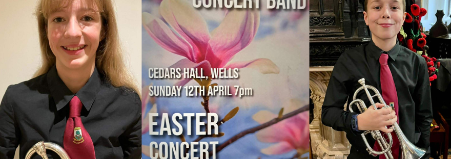 Wells City Band main band young cornet players Rudy and Naomi performed as full members of the Somerset County Youth Concert Band at a sell out concert at Cedars Hall in Wells last Sunday. They were performing alongside the best young wind brass and percussion players in the county aged 11-21 including music graduates at university. The programme included the rhythmically demanding Incantation and Dance by John Barnes Chance and the equally challenging A Jubilant Overture by Alfred Reed. Second half of the performance was a blistering affair of hits from films, animations and musicals.