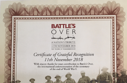 In November Wells City Band were invited to play at the commemoration of 100 Years since the guns fell silent at the end of the First World War. This occasion was part of the National Commemoration of "Battle's Over", a unique series of events involving organisations and communities the length and breadth of the country.… Continue reading Certificate of Grateful Recognition