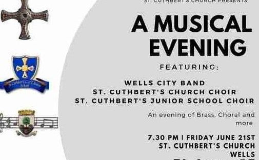 A musical evening featuring Wells City Band, St. Cuthbert's Church Choir and St. Cuthbert's Junior School Choir.