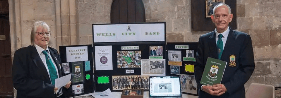 Wells City Band ex-chair and compère, Nick Poole, says “… In her painstaking research, Sue has discovered that our band traces its roots way back to the earliest days of ‘town’ bands. Back in the 1830’s it wasn’t even a brass band; there were all sorts of wind instruments – clarinets, bugles, flutes – really, whatever was available to play together. By the 1860’s our band, like many others across the country, had settled down to being all brass. Sue has found that the band went under various names over the years, but ever since 1907 it has been known as ‘Wells City Band’. We are proud to learn from this book that for 180 years our band and its predecessors have served the city and surrounding area by playing for many public occasions such as leading the carnival, giving bandstand concerts and accompanying the mayor-making ceremony.”